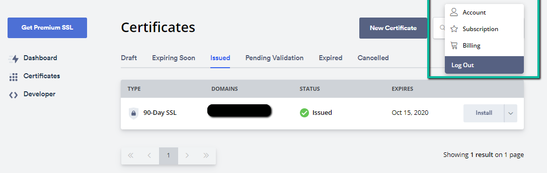 Once verified, the SSL certificate is issued automatically. -